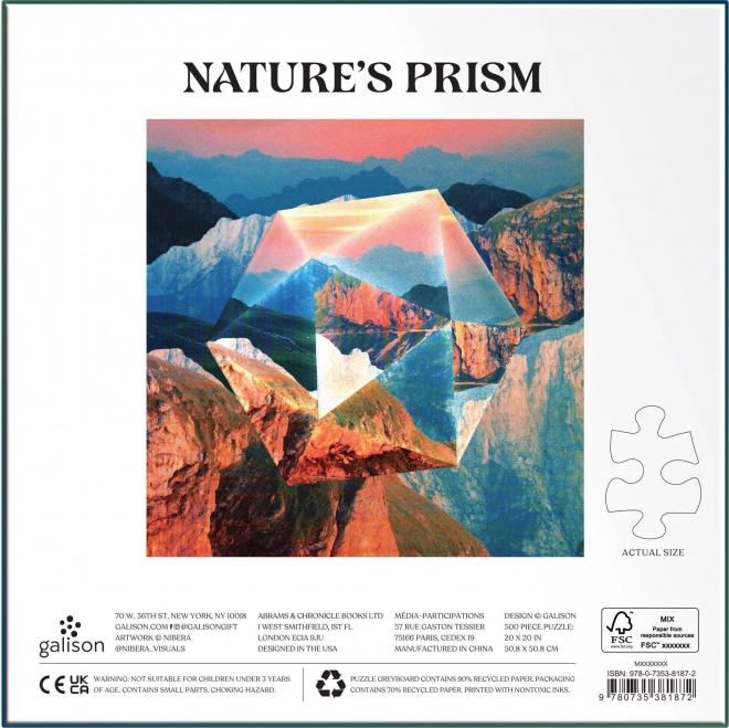 Entdecken Sie die Freude am Puzzeln mit Galison Puzzle Natürliche Prismen 500 Teile. Dieses atemberaubende Puzzle entführt Sie in eine Welt farbenfroher, abstrakter Berge und prismatischer Effekte, die zusammen eine künstlerische Augenweide bilden.