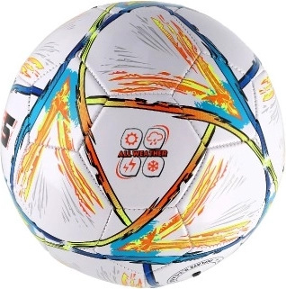 Zuverlässiger und robuster bunter Fußball für Freizeit- und Trainingsgebrauch. Dank Größe 5 und 23 cm Durchmesser eignet er sich hervorragend für Erwachsene und ältere Kinder. Die genähte Verarbeitung und die Lederoberfläche bieten ein angenehmes Ballgefühl, stabilen Flug und bessere Ballkontrolle.