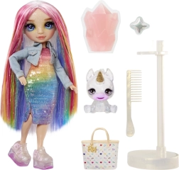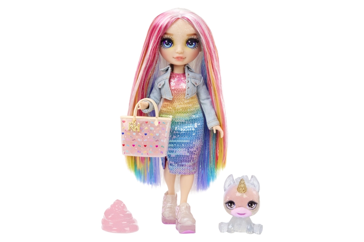 Mit dabei sind ein niedlicher Einhorn-Begleiter und ein gelartiger Slime, den Sie ziehen, drücken und zur Dekoration von Accessoires verwenden können – von der transparenten Handtasche bis zu Plateauschuhen. Nach dem ersten Auspacken genügt ein sanftes Auswaschen der Haare, damit sie weich und glänzend sind. Die Kollektion wird durch beliebte Charaktere wie Violet, Skyler, Jade, Sunny und Ruby ergänzt – sammeln Sie sie alle und erschaffen Sie Ihre eigene Regenbogenwelt.