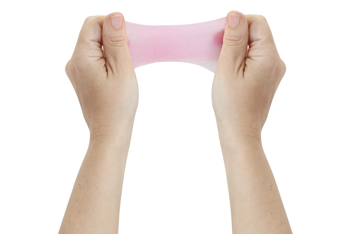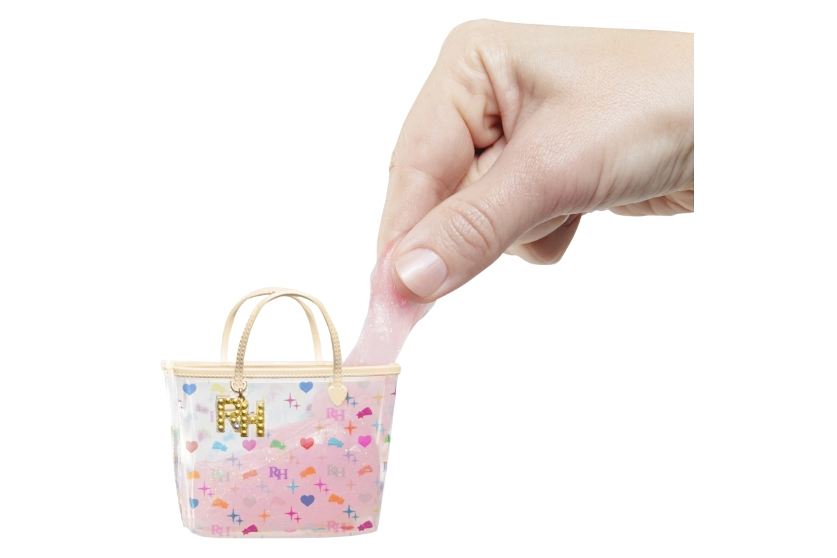 Der rosafarbene Gel-Slime lässt sich ziehen, formen und zum Verzieren von Schuhen oder der transparenten Handtasche verwenden. Ein spaßiges haptisches Spiel, das Kreativität und Originalität fördert.