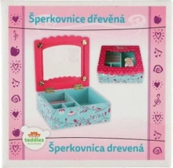 Holz-Schmuckkästchen mit Blumen und Spiegel, türkis‑rosa