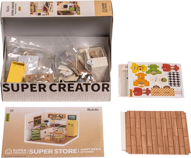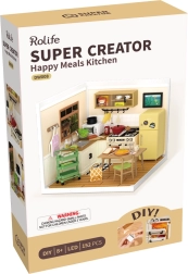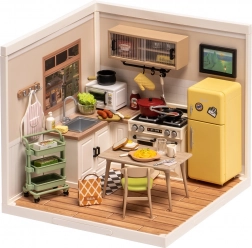 Entdecken Sie die Welt der detailreichen ROBOTIME-Miniaturen und gestalten Sie eine behagliche Küche in gedeckten Farben. Das Modell umfasst Herd, Schränke, Essmöbel und kleine Accessoires, die natürlich und authentisch wirken. Dank der LED-Beleuchtung kommt jedes Detail zur Geltung und Ihr Werk wird zum Blickfang auf Regal oder Schreibtisch.