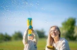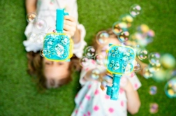 Die Mehrfach-Düse erzeugt einen dichten Strom feiner Bläschen, der den Raum im Handumdrehen mit Spaß füllt – ideal für den Garten und Kinderpartys.