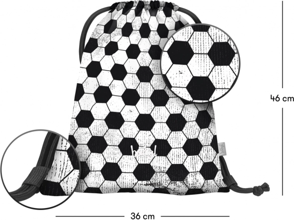 Dank seines geringen Gewichts ist er ideal für die Schule, die Turnhalle und Freizeitaktivitäten. Der geräumige Beutel fasst Schuhe, Trainingskleidung und persönliche Gegenstände. Das auffällige schwarz-weiße Hexagon-Muster verleiht Ihrem Outfit einen sportlichen Look.
