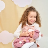 Diese handgefertigte Puppe begeistert mit sanfter Mimik, hübschen Wimpern sowie detailreich geformten Händen und Füßen aus Vinyl. Der Stoffbauch ist angenehm zum Kuscheln und beim Druck auf den Bauch gibt die Puppe ein Weingeräusch von sich, das Rollenspiele und die Entwicklung von Empathie fördert.