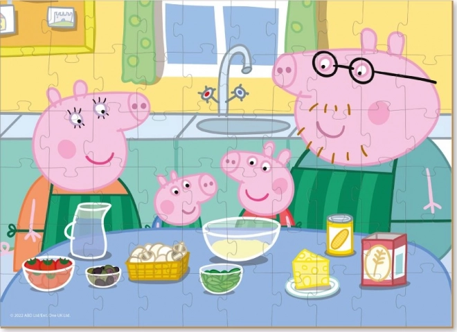Das niedliche Motiv „Gemeinsames Kochen“ aus der beliebten Welt von Peppa Wutz begeistert jeden kleinen Fan. Das Puzzle ist so gestaltet, dass es Kindern eine angemessene Herausforderung bietet, ihr logisches Denken fördert und sie zugleich mit bunten Farben und klaren Formen unterhält.