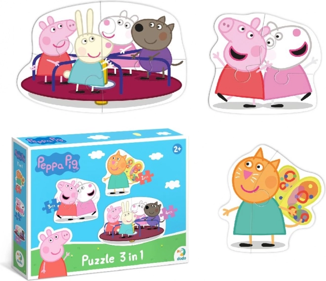 Dieses Puzzleset ist ideal für die Kleinsten, die erste Erfahrungen mit dem Puzzeln sammeln. Drei Konturenmotive mit unterschiedlichem Schwierigkeitsgrad (2, 3 und 4 Teile) erleichtern die schrittweise Entwicklung der Fähigkeiten und sorgen für viel Spaß mit den Figuren aus der Welt von Peppa Wutz.