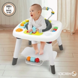 Der Tisch bietet drei verschiedene Phasen für das Wachstum und die Unterhaltung Ihres Kindes, von Sitzen über Gehen bis hin zu kreativen Aktivitäten.