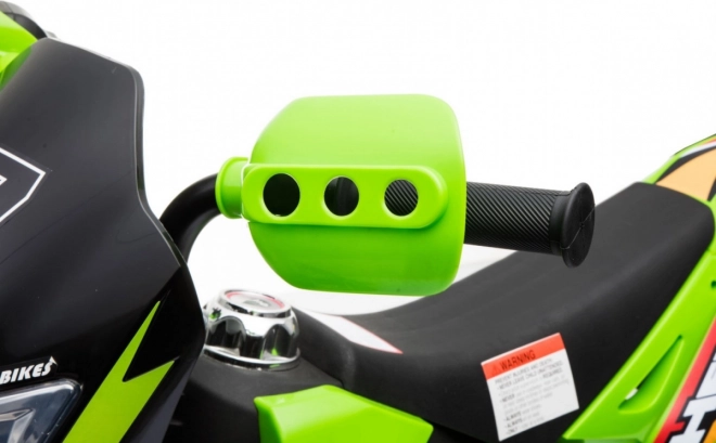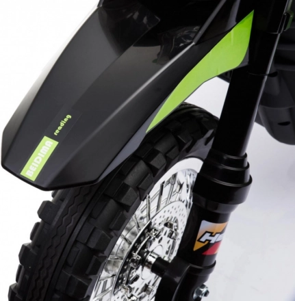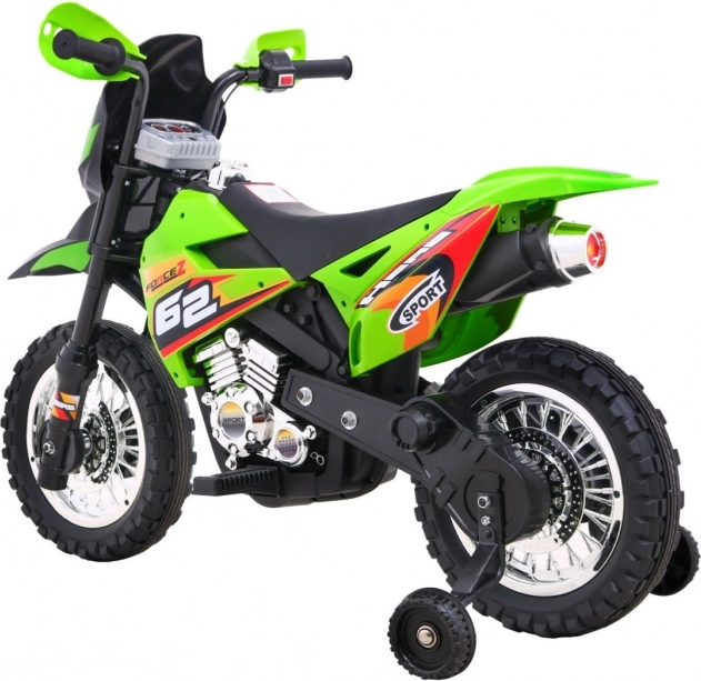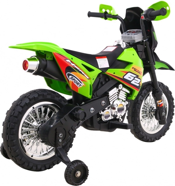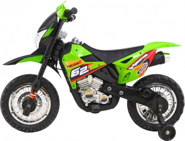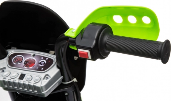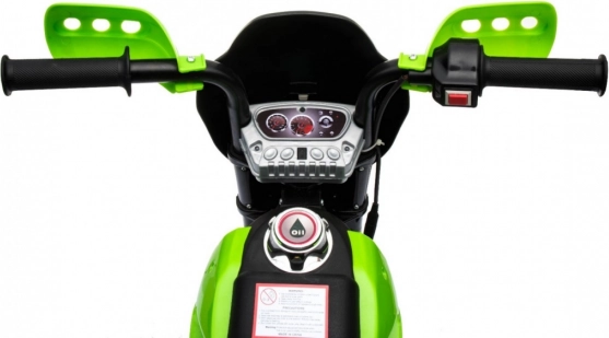 Das elektrische Kinder-Motorrad im Cross-Stil ist ideal für die ersten Fahrten auf zwei Rädern. Die einfache Bedienung dank Gasgriff und Vorwärtsmodus stärkt das Vertrauen, während abnehmbare Stützräder auf jedem Untergrund für Stabilität sorgen. Vordere LED-Lichter und ein Panel mit Geräuschen und Melodien sorgen für eine Extraportion Spaß und Realismus.