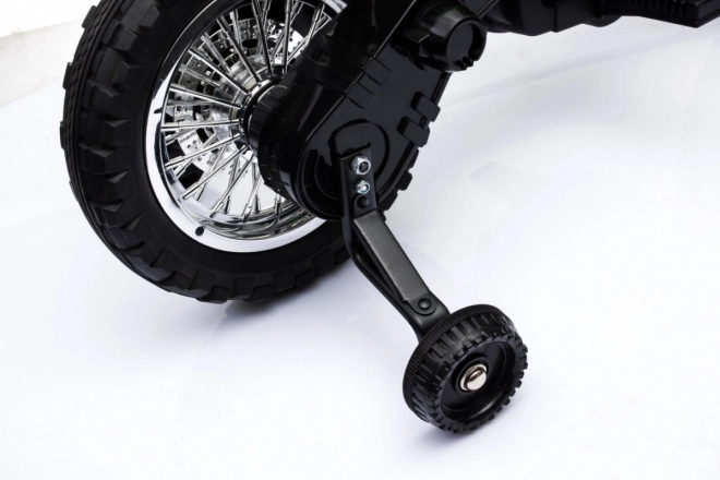 Die praktische Konstruktion mit Kunststoffrädern und Gummilaufstreifen erhöht Komfort und Haftung. Der bequeme Sitz (34 × 14 cm), die sichere Bodenfreiheit (13 cm) und die kompakten Abmessungen 105 × 50 × 72 cm machen das Motorrad zum perfekten Gefährt für den täglichen Spielspaß. Im Lieferumfang ist alles enthalten: Anleitung, Ladegerät und anschraubbare Stützräder.