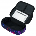 Stabiles Federmäppchen mit aufklappbarer Trennwand, Reißverschlussfach und Platz für den Stundenplan (ohne Inhalt). Robuster Beutel mit Kordelzug aus festen Kordeln zum Tragen auf dem Rücken.