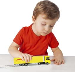 Der DHL-Sattelzug ist ideal für alle Kinder, die Zustelldienste nachspielen möchten. Dieses Modell im Maßstab 1:87 ist aus Metall und PVC gefertigt und bietet dadurch eine lange Lebensdauer und hohe Widerstandsfähigkeit beim Spielen. Dank des Freilaufs können Kinder stundenlangen Spaß haben, ganz ohne Batterien. Das auffällige DHL-Logo macht dieses Spielzeug zu einer originalgetreuen Kopie echter Zustellfahrzeuge.