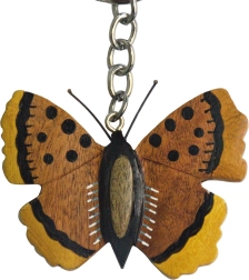 Dieser große Holz-Schlüsselanhänger mit Schmetterlingsmotiv besticht durch sorgfältige Handarbeit und seine natürliche Optik. Jedes Stück wird von Hand bemalt, wobei das Holz seine authentischen Farbtöne ohne zusätzliche Färbung behält. Der Metallring sorgt für eine einfache und sichere Befestigung an Schlüsseln, Rucksack oder Handtasche.
