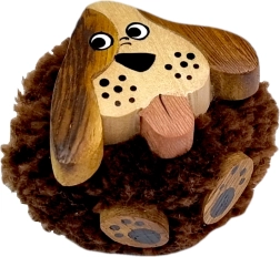 Holzmagnet mit flauschigem Pompon – Hund