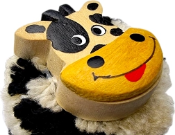 • Fröhliches Design – ein flauschiger Pompon und das liebenswerte Kuhgesicht sorgen für gute Laune.