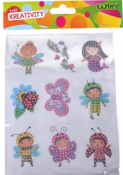 Diamantmalerei ist eine beliebte DIY-Aktivität, die Kindern spielerisch Konzentration und Genauigkeit vermittelt. Es wird nach der beigefügten Vorlage mit Legende (Buchstaben/Ziffern) gearbeitet: Entsprechend der Kennzeichnung werden die farbigen Steinchen mithilfe von Stift und Wachs aufgeklebt. Das Ergebnis sind funkelnde Aufkleber mit Feenmotiven, die Schulutensilien und das Kinderzimmer wunderbar schmücken.