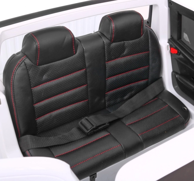 Komfort bieten der gepolsterte Sitz aus Kunstleder, EVA-Räder 30×12 cm und hintere Stoßdämpfer. Der realistische Look wird durch vordere und hintere LED-Lichter, zu öffnende Türen mit Verriegelung und eine geräumige öffnende Ladefläche unterstrichen. Für Unterhaltung sorgen das MP4-Panel, eine Ladezustandsanzeige sowie das beiliegende Zubehör inklusive Ladegerät und USB mit Anleitung.
