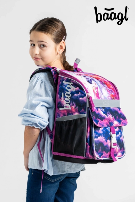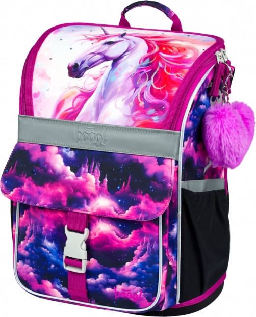 Der BAAGL Schulranzen aus der Zippy-Serie mit dem zauberhaften Motiv Einhorn Königreich ist für Komfort und gesundes Tragen ab der 1. Klasse konzipiert. Ergonomisch geformte Rückenpartie und das verstellbare Rückensystem ERGO ADJUSTABLE SYSTEM ermöglichen eine präzise Anpassung an die Körpergröße des Kindes. Voll verstellbare Schulter-, Brust- und seitliche Kompressionsriemen gewährleisten korrekten Sitz und Stabilität auch bei voller Beladung.