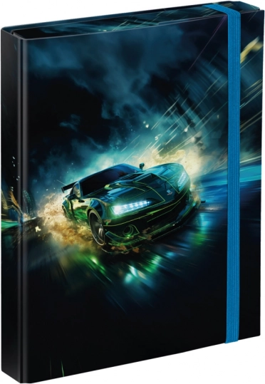 Praktische Heftmappen im Format A5 mit Rennwagenmotiv schützen Schulutensilien vor Beschädigung. Sie bieten starken Karton, eine glänzende, robuste Oberfläche und eine innere Tasche mit Klappe und Gummiband gegen Herausfallen.