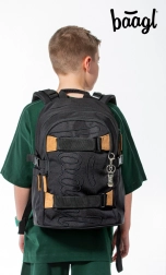BAAGL Skate Darkness ist ein durchdachter Schulrucksack für den täglichen Weg zur Schule, für Freizeitaktivitäten und Stadtausflüge. Dank drei separaten Fächern mit Innen-Organizer und einem gepolsterten Fach verstauen Sie Bücher, Hefte und ein 15"-Notebook oder Tablet sicher. Seitliche stabile Taschen sind ideal für Trinkflaschen, die vorderen Riemen halten problemlos ein Skateboard.