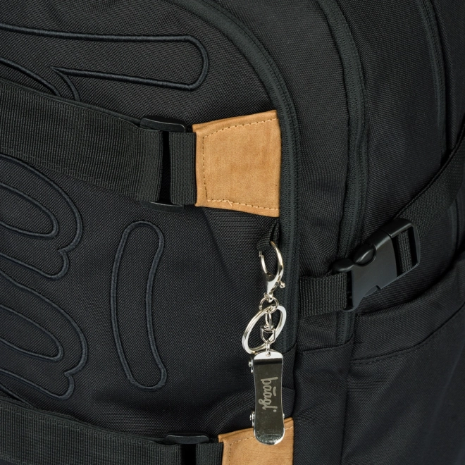 Zwei vordere Riemen zur Befestigung eines Skateboards, strapazierfähiges wasserabweisendes Material und zuverlässige YKK-Reißverschlüsse. Inklusive Metallanhänger in Skate-Form.
