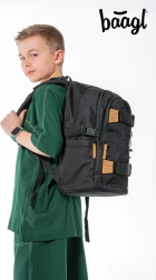 Das Schulset Baagl 3 SET Skate Darkness ist auf maximalen Komfort, Organisation und Sicherheit ausgelegt. Ergonomisch geformter Rücken, vollständig verstellbare Schulter-, Brust- und seitliche Kompressionsgurte sorgen für eine perfekte Anpassung an die Statur. Der Rucksack verfügt über drei separate Fächer mit Organizer, ein gepolstertes Fach für ein 15"-Notebook oder Tablet und Seitentaschen für eine Flasche.