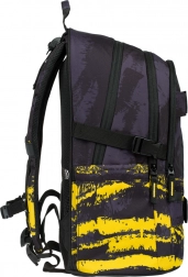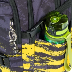 • Praktische Details: Gurte für das Skateboard, Seitentaschen für Flaschen, metallischer Anhänger in Skateboard-Form.