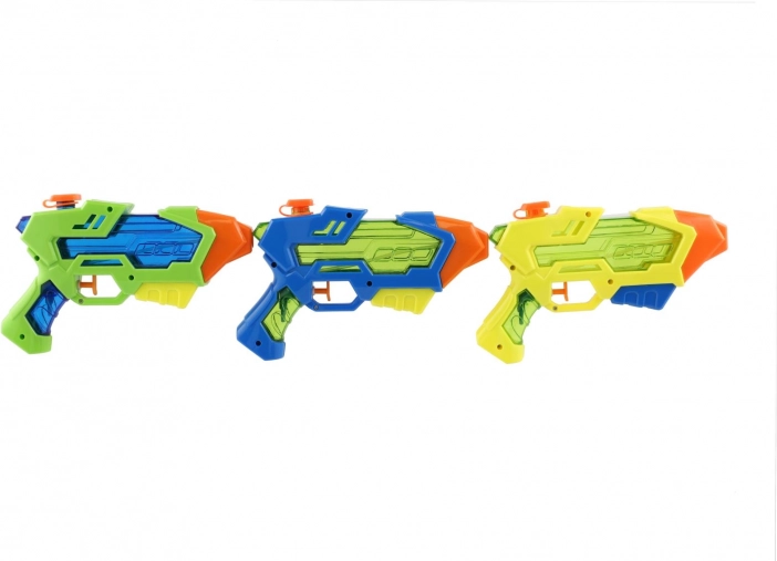 Transparente Teile des Tanks ermöglichen eine schnelle Kontrolle des Wasserstands, während die markante Düse einen präzisen Wasserstrahl gewährleistet. Erhältlich in 3 kräftigen Farben (Mix), die Kinder begeistern und die Unterscheidung beim Spielen mit Freunden erleichtern.