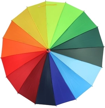 Fröhliches Regenbogendesign bringt Freude auch an regnerischen Tagen.