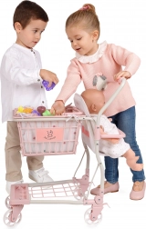Der niedliche 2-in-1 Kinder-Einkaufswagen aus der KOALA-Kollektion kombiniert einen großen rollbaren Korb mit Sitz für die Puppe und einen herausnehmbaren Handkorb. Er bietet 12 Stück Kunststoffobst, schwenkbare Vorderräder, hintere Bremsen und Stauraum im unteren Bereich. Leichte Handhabung, hochwertige Verarbeitung und ein zartes Design begeistern jede kleine Verkäuferin.