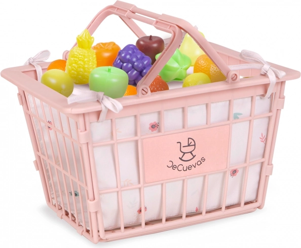 Dieser rosafarbene Kinder-Einkaufswagen ist ideal für den Kaufladen und fördert Fantasie, soziale Fähigkeiten und Feinmotorik. Er kombiniert einen geräumigen rollbaren Wagen mit Puppensitz und einen abnehmbaren Handkorb mit Stoffkante. Inklusive 12 farbiger Obststücke für realistisches Spiel.