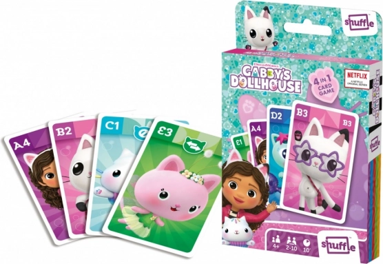 Das Gabbi Cat House Shuffle 4-in-1-Spiel hebt das übliche Kartenspiel auf ein neues Niveau. Die bekanntesten Kartenspiele mit den beliebten Figuren aus dem Katzenhaus. Dieses eine Produkt bietet zudem stundenlangen Spielspaß, denn Sie können vier verschiedene Spiele spielen. Quartett, Aktionsspiel, Schwarzer Peter und Schnipp-Schnapp sind das Rezept gegen Langeweile.