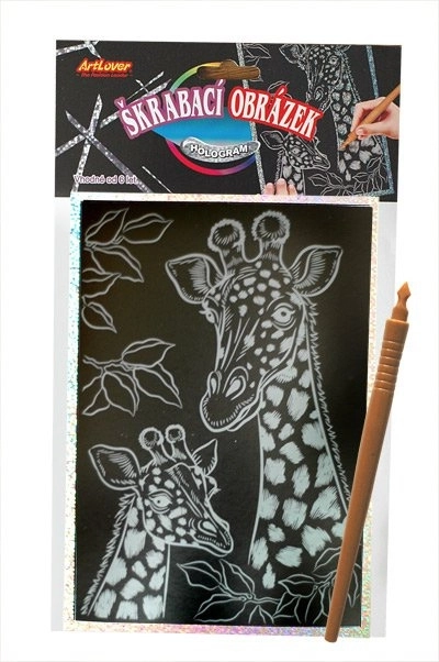 Neben dem vorgedruckten Motiv können Kinder auch die freien schwarzen Bereiche auskratzen und einen eigenen Rahmen oder Zubehör gestalten – Herzchen, Sterne oder kleine Schmetterlinge. Das Kratzbild fördert so Feinmotorik, Geduld und Fantasie.