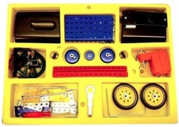 Das Flaggschiff der MERKUR-Baukästen bietet eine Komplettausstattung für ambitionierte Projekte. Dieses fünfschichtige Set enthält sämtliche Teilarten, die Sie aus kleineren Sets kennen, ergänzt um einen Motor und eine große Auswahl an Getriebeelementen. Dank der robusten Metallkonstruktion und präzisen Bohrungen ist das Bauen stabil, exakt und äußerst variabel.