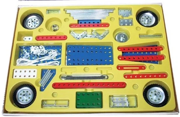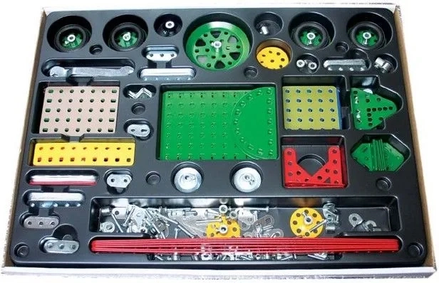 Der MERKUR 100 Modelle Bausatz ist beliebt für seine Vielfalt und die Bauoptionen. Er enthält die meisten Teile wie Merkur M5 und weitere Teile wie große Traktorräder, Zahnräder, lange Winkel und mehr. Das Set bietet ausreichend Teile für die Kreativität junger Konstrukteure.