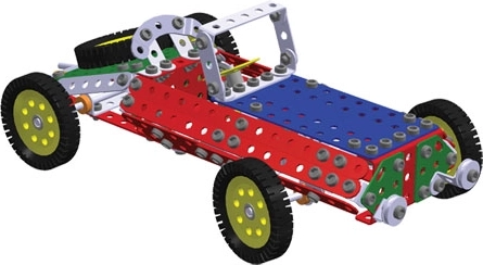 Dieses Bausatz enthält alles, was Sie zum Bau verschiedener Modelle benötigen, einschließlich großer Traktorräder und Zahnräder.