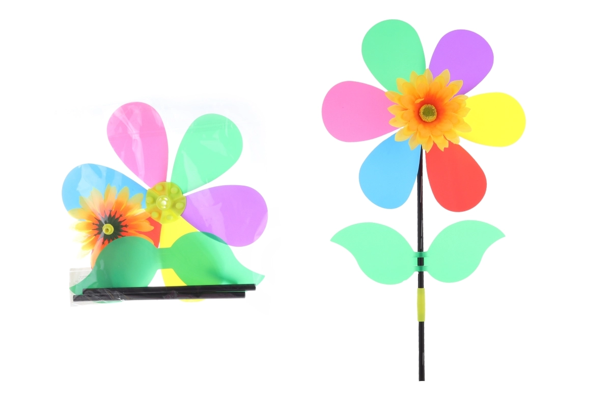 Das Windrad in Blumenform ist eine schöne und funktionale Dekoration für den Außen- und Innenbereich. Die drehbaren Blütenblätter setzen sich bei jedem Windhauch in Bewegung und sorgen für einen faszinierenden Anblick. Der Kunststoffstab ermöglicht eine einfache Platzierung in Beeten, auf dem Rasen oder im Blumentopf.