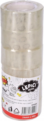 Satz transparenter Klebebänder mit einer Breite von 24 mm und einer Länge von 30 m, ideal für den täglichen Gebrauch im Büro oder Haushalt. Jedes Paket enthält 6 Stück Band.