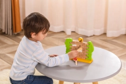 Robuste Holzteile mit glatten Kanten und eine stabile Basis sorgen für sicheren und langlebigen Spielspaß zu Hause und im Kindergarten.