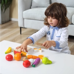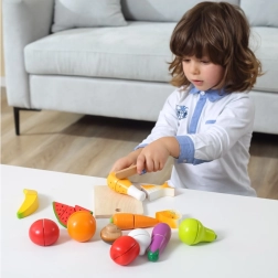 Die Elemente sind robust, liegen angenehm in der Hand und sind in der Größe auf kleine Kinderhände abgestimmt. Dank der „Schneide“-Verbindung lassen sich die Lebensmittel leicht wieder zusammensetzen, sodass das Spiel nie langweilig wird und ganz natürlich Geduld, Konzentration und manuelle Geschicklichkeit trainiert.