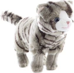 Weicher Plüsch mit feiner Streifung und blauen Augen wirkt glaubwürdig und lädt zum Kuscheln ein.