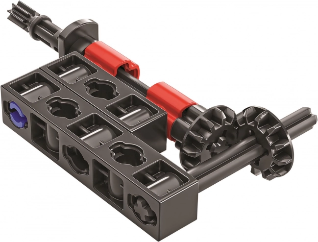 Technic-Teile mit Achsen, Zahnrädern und Kupplungen zeigen Kraftübertragung und Mechanikprinzipien in der Praxis.