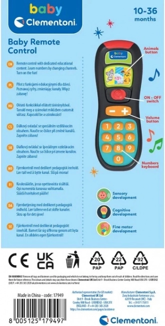 Dieser Kinder-Controller imitiert eine echte Fernbedienung und verwandelt das tägliche Spiel in Entdeckungen. Über die Tasten übt das Kind die ersten Zahlen, lernt Tiere und ihre Geräusche kennen und entwickelt gleichzeitig die Feinmotorik. Fröhliche Melodien und Lichteffekte motivieren zum weiteren Erkunden.