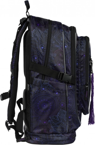 Das Design mit eleganten violett-schwarzen Motiven wird durch einen trendigen Anhänger ergänzt. Der Rucksack bietet ein Volumen von 29 l, eine Traglast von 7 kg und wurde in einem akkreditierten Prüflabor getestet und zertifiziert – er erfüllt somit die Anforderungen an Qualität und Sicherheit.