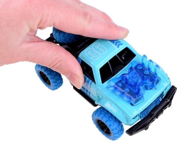 Das Predator 4x4 ist ideal für Kinder, die schnelle Fahrten, Stunts und dramatische Kollisionen lieben. Einfach aufziehen, loslassen und die Action verfolgen – eindrucksvolle Crashs werden von blinkenden blau-roten Lichtern und dynamischen Sounds begleitet. Die kompakten Abmessungen erleichtern Griff und Transport.