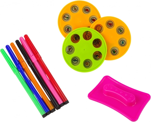 Drei austauschbare Scheiben mit insgesamt 21 Bildern erleichtern Kindern die ersten Schritte beim Zeichnen und beflügeln ihre Fantasie.