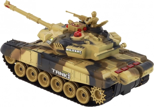Für echten Realismus sorgt das Kettenfahrwerk mit weichen Gummiketten, das ausgezeichnete Haftung auf verschiedenen Untergründen gewährleistet. Beeindruckende Soundeffekte versetzen die Spieler direkt aufs Schlachtfeld. Motorklang, Kanonenschüsse und MG-Feuer schaffen eine intensive Atmosphäre, die jede Schlacht zu einem unvergesslichen Erlebnis macht. Dieses Kampfpanzer-Set ist nicht nur ein Spielzeug, sondern eine echte strategische Herausforderung für alle Militärfans.