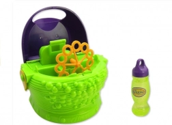 Drücken Sie einfach einen Knopf, füllen Sie die Flüssigkeit ein, und sehen Sie den Hunderten von tanzenden Seifenblasen in der Luft zu.