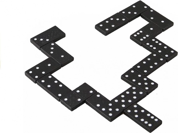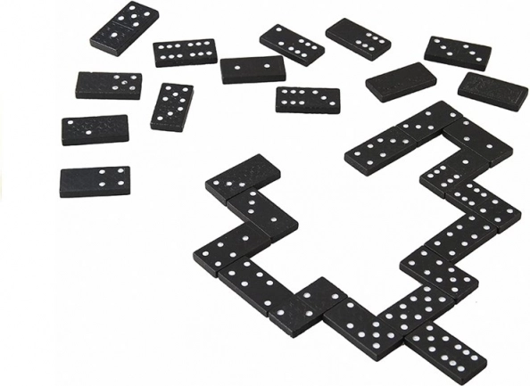 Domino – ein Spiel, bei dem Plättchen verwendet werden, die Steine genannt werden.