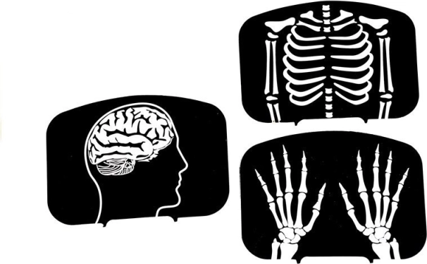 Röntgenkarten von Kopf, Brustkorb und Händen wecken Neugier und helfen Kindern, spielerisch die Grundlagen der Anatomie zu verstehen.